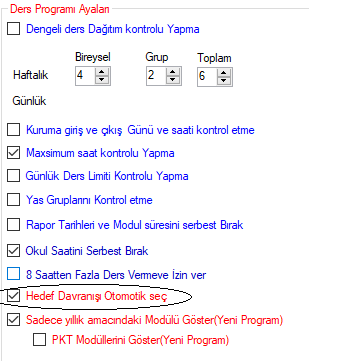 3. Mebbis seansları  40 dakika olarak Güncellediğinde, 45 dakika olarak yaptıgınız ders planını otomatik olarak değişmek için
