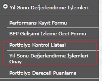 Mebbisden once Portfolyo Kontrol Listesi sonra Yıl Sonu Değerlendirme İşlemleri Onay işlemlerini kaydedilmelidir.