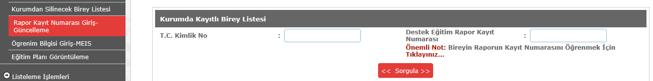 Mebbis Engelli Birey modülü "Özel Eğitim Modülü" olarak değiştirmiştir. işlemlerineze devam edebilmek için