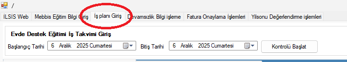 Evde Destek Eğitimi alan öğrencilerin  İş Takvimi Giriş için Mebbis giriş ekranına Gerekli Güncelleme eklenmiştir.