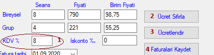 1. Ucretleri sıfırla 2. Ucretlendir. 3 Fatura Tarihini seçip Faturaları Kaydet Butonlarını tıkyın ve faturaları yazdırın..