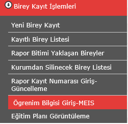 2. Eğitim Bilgi Giriş listesine Menu Eklendi.