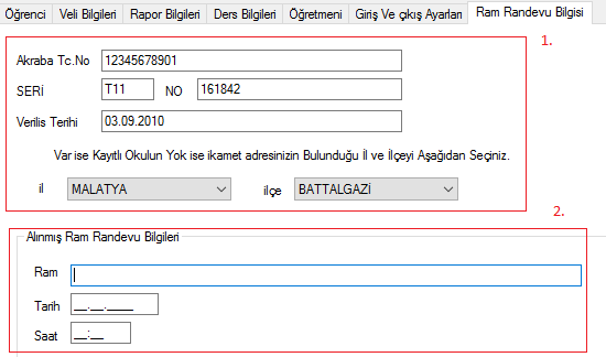 1. veli kimlik numarası, Öğrenci kimlik seri ve no su ve veriliş tarihi hatasız