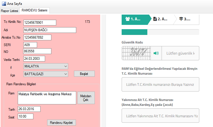 Program da mebbis in altında Ram Randevu'yu tıklayarak bu sayfaya